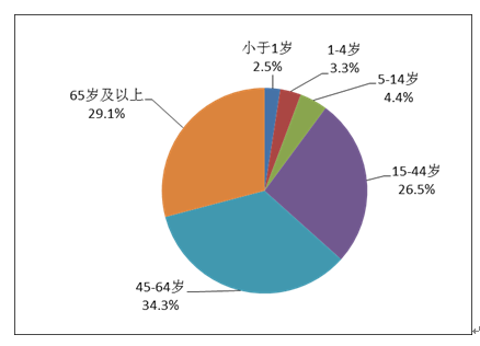 2019年藥品不良反應/事件報告中,男女患者比為0.86:1,女性略多于男性。14歲以下兒童患者占10.2%;65歲及以上老年患者占29.1%(圖5)。